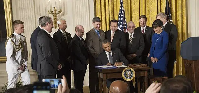 US President Obama signing the AGOA Trade Preferences Extension Act of 2015 into law.